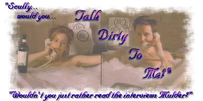 "The X-Files" TM and © (or copyright) Fox and its related entities. All rights reserved. Any reproduction, duplication or distribution of these materials in any form is expressly prohibited. This web site, its operators and any content on this site relating to "The X-Files" are not authorized by Fox."
